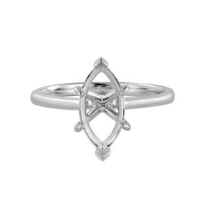 This engagement ring is composed of a marquise center stone with six polished prongs. And the shank without any stone and polished, classic and elegant.